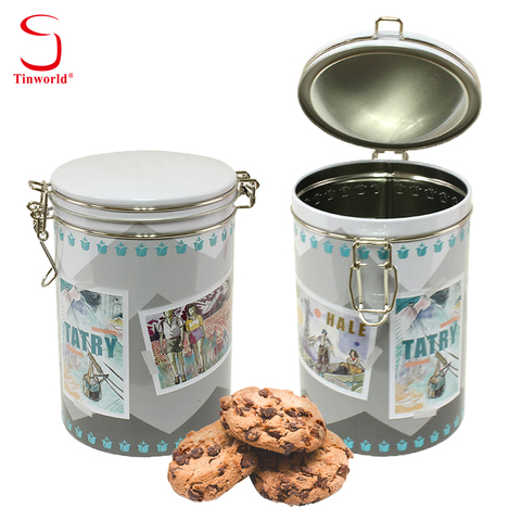 Tinworld Factory Custom Tinplate Canister Cylinder Biscuit Tin Can Metal Cookie Box Packaging for Food
